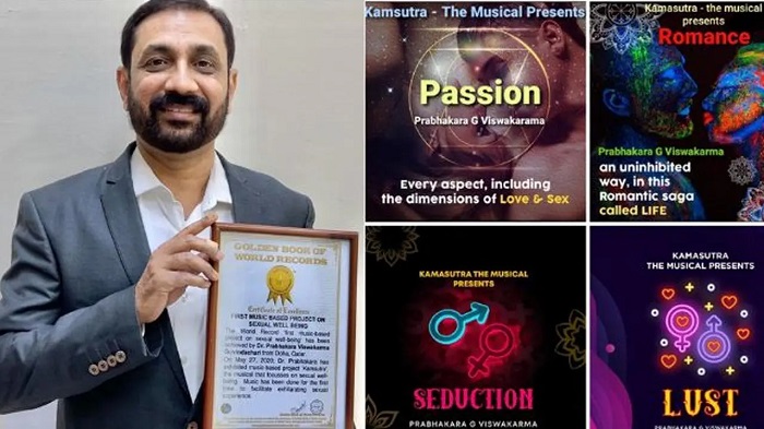 Dr. Prabhakara Viswakarma Govindachari, a resident of Qatar has been awarded a certificate from the prestigious “Golden Book of World Records “, in appreciation of his music-based project on sexual well-being. He is a practicing Dermatologist with a keen interest in music and behavioral sciences.